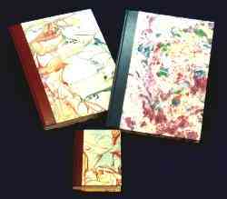 Die Herstellung von einem handwerklich gebundenem Buch ist sehr aufwendig. Der Buchblock wird rundherum glatt beschnitten, vorn und hinten mit doppeltem Vorsatzpapier versehen, gerundet und im Rücken gelumbeckt, dann mit Gaze, einer Papphülse sowie Kapitalband und eventuell Lesebändchen versehen. Danach wird die Decke indivduell an diesen Buchblock angepaßt und mit den gewünschten Materialien bezogen. Dies kann Leder, Kunstleder, Leinen oder Papier sein. Aus diesen Materialien ergeben sich viele schöne Gestaltungsmöglichkeiten. Für exklusive Bücher können wir auch die Prägung des Titels im Rücken in Gold oder einer anderen Farbe anbieten.