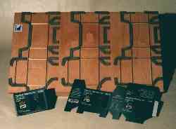 Zu unseren Verarbeitungsmöglichkeiten gehört unter anderem das "Stanzen". Dies ist das industrielle "Ausschneiden" vielfältiger Formen aus planliegenden Bogen (Papier, Pappe, Leder, PVC) mit Hilfe eines Bandstahlschnittes unter Einwirkung von hohem Druck.